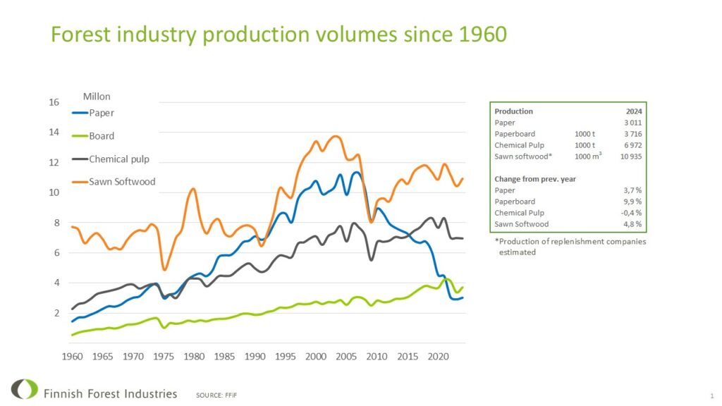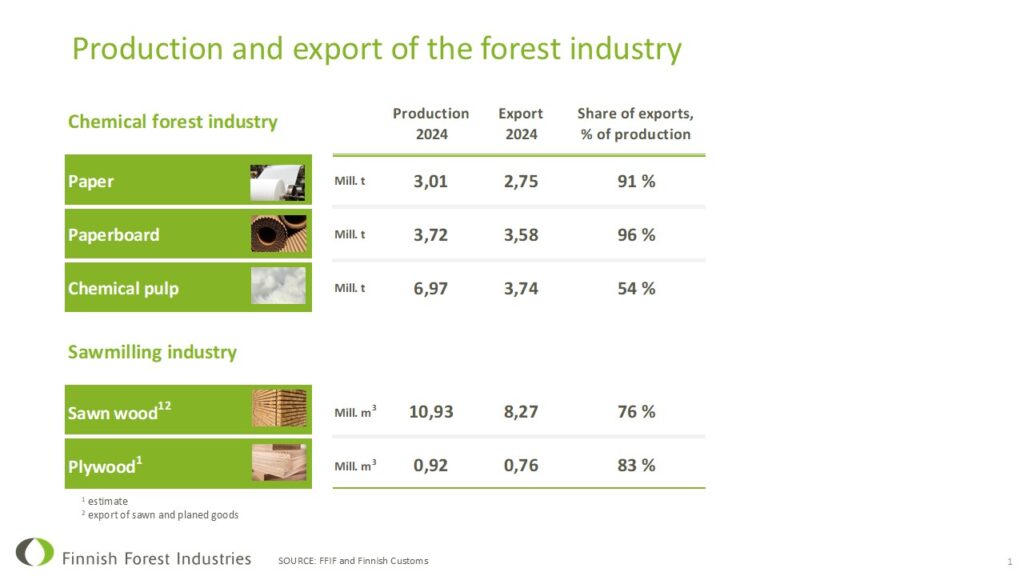 Did you know that the members of Finnish Forest Industries and Finnish Federation of the Woodworking Industry have 141 production plants in Finland? See current industry statistics and key figures here.