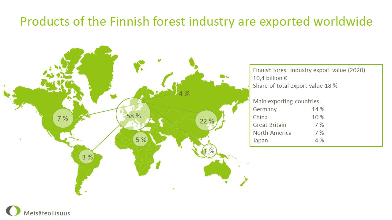 Finnish export is highly dependant on maritime transport. Over 90% of Finnish forest industries export is transported by sea.